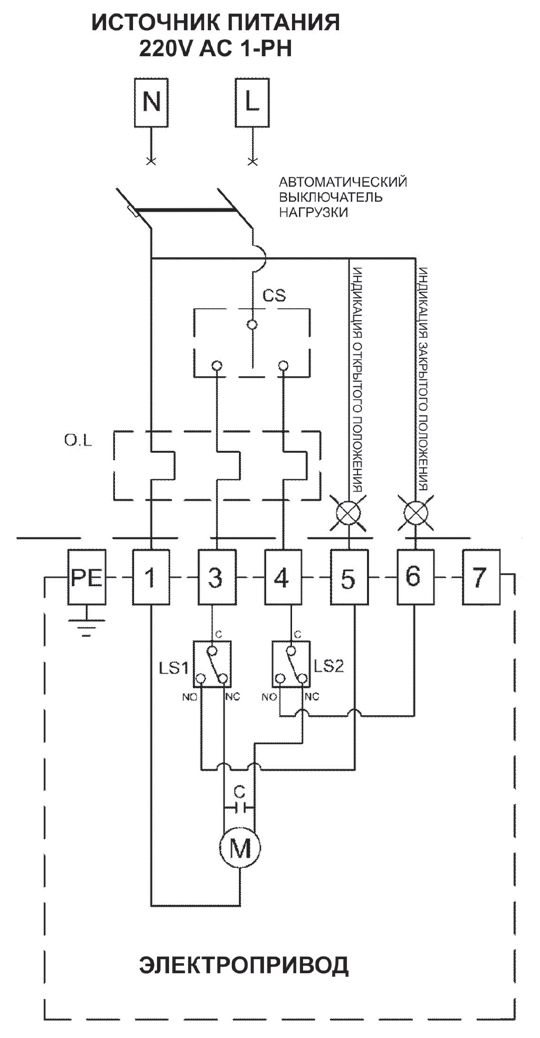 Монтаж электроцепей осуществляется на клемной колодке привода согласно схеме подключения.